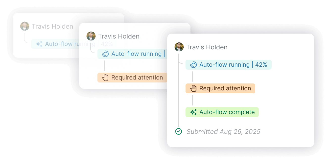 Tasks open with evidence attached and exceptions flagged, so your team can focus on review, edits, and approvals instead of manual rebuilds